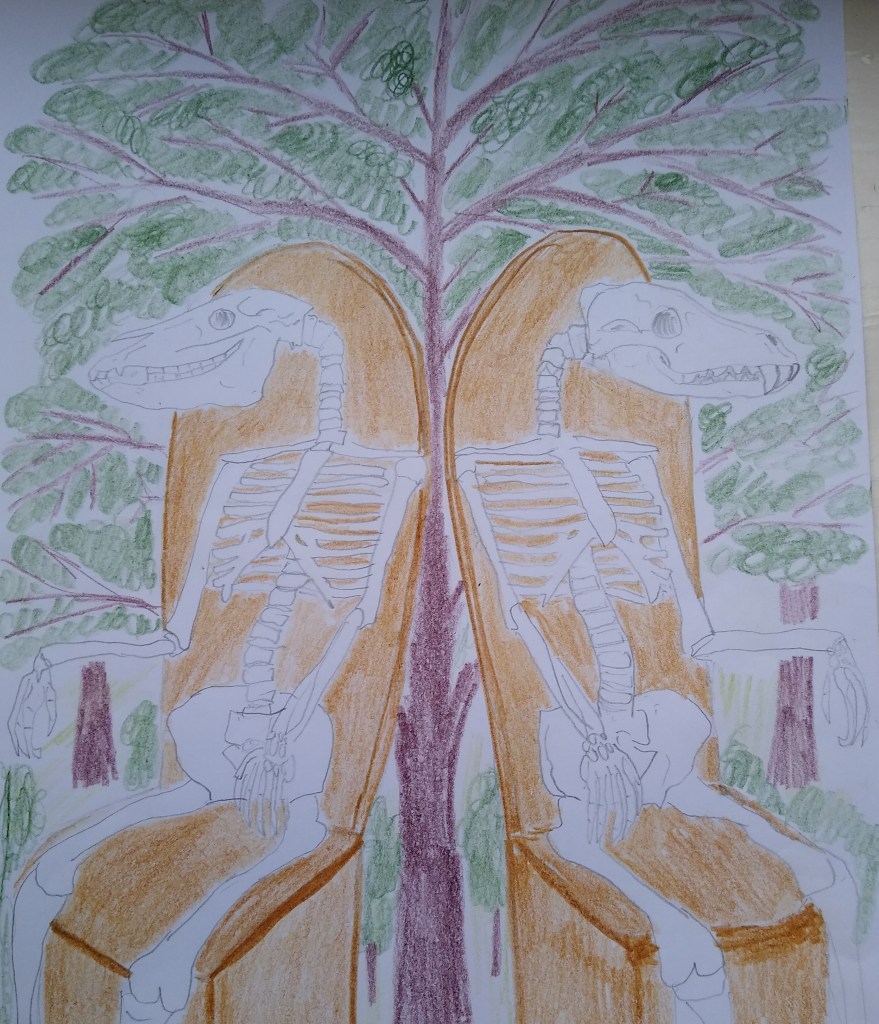 This is an image I was inspired to draw of the King and Queen of Annwn as Bone Wolf and Bone Mare – a guise Gwyn ap Nudd and Creiddylad/Rhiannon have been appearing to me in this winter, a time of revelation, as so many things have been stripped bare.