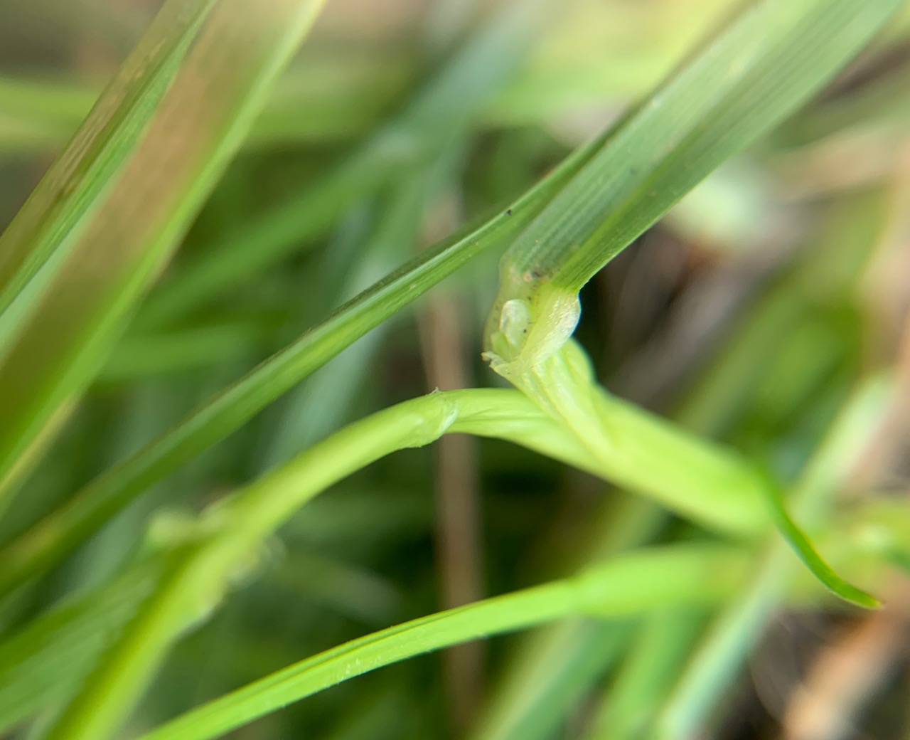 To tell individual grasses from grass you need to get familiar with their structure: roots, rhizomes or stolons, sheath and blade, nodes, culm, the inflorescence and its spikelets, awned and unawned, the number of florets and, within each floret, the glumes, anthers, stigma, lemma, and palea. Then, importantly, there’s the ligule, where the blade meets the sheath, which can be long and pointed, short and blunt, a ring of hairs, and sometimes has auricles.