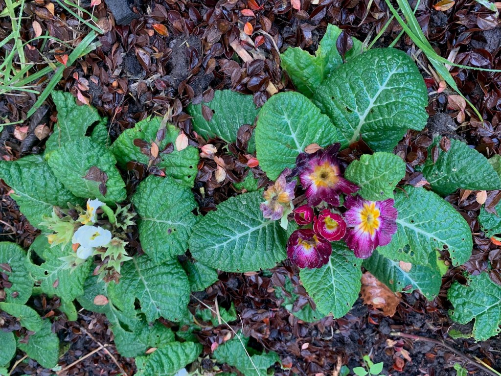 Our primroses, after the Arctic Blast, looking like how I felt when I was burnt out.