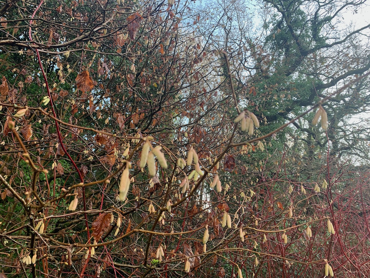 Hazel catkins in Greencroft Valley – a sign of new life as an old year dies and a new one begins.