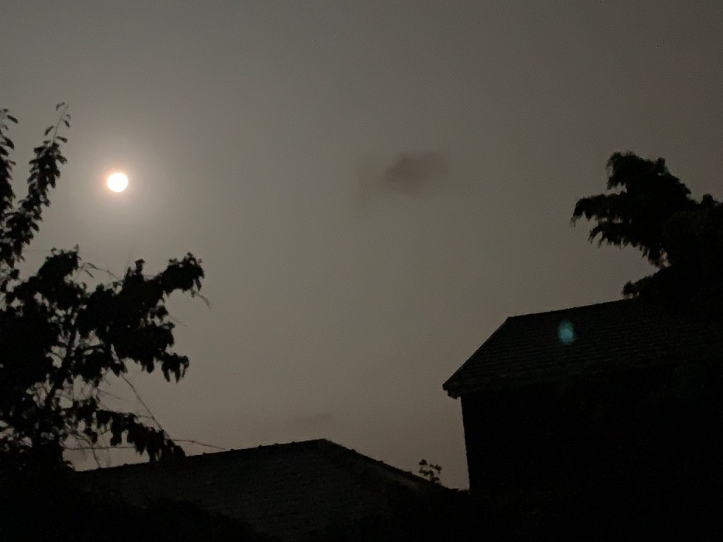 This year I feasted Gwyn last night with the Monastery of Annwn. This proved fitting as when I went out before dawn this morning to pour the mead I left on His altar overnight at His apple tree in our garden I saw the full moon.