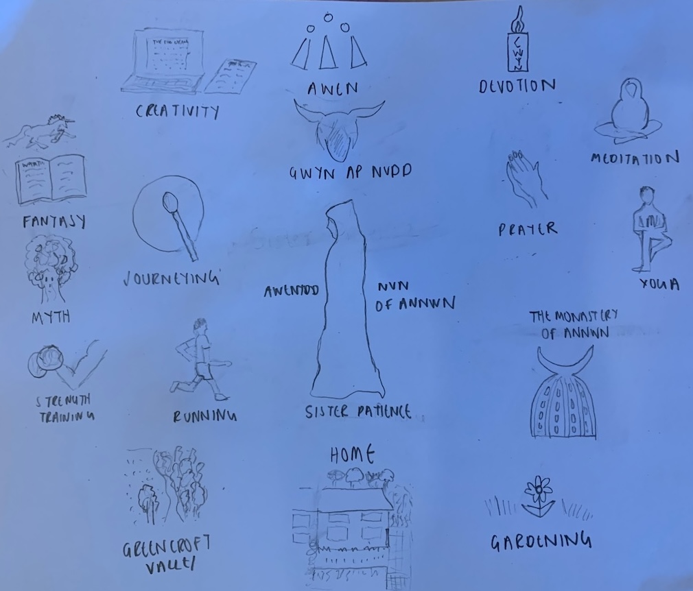 In preparation for taking my vows one of my spirit guides instructed me to draw a map of the essential parts of my life as a nun of Annwn I intend to carry with me through the next three years.
