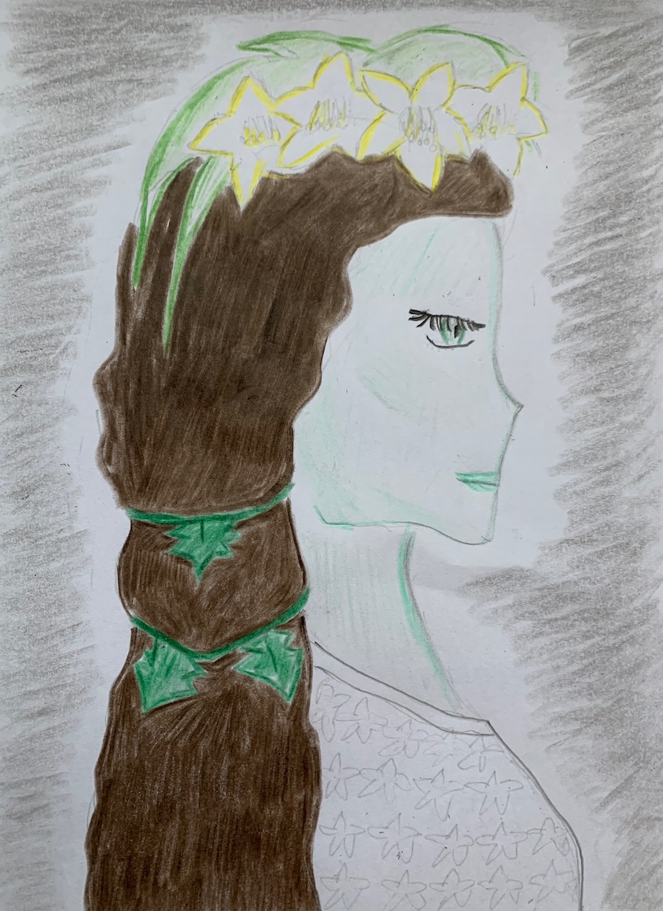 Beautiful imagining of Creiddylad. I love the flowers she has embodied in this.