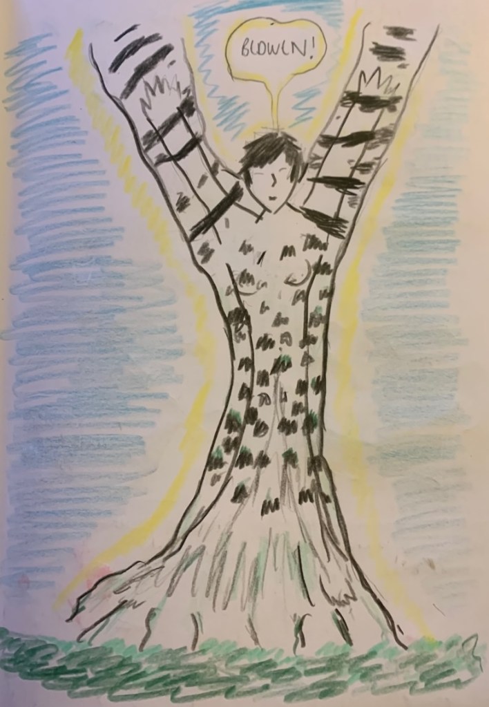 I spend some talking and listening with the birch and am shown a vision of the wind blowing birch catkins into the future and told that I must ‘dream on.’