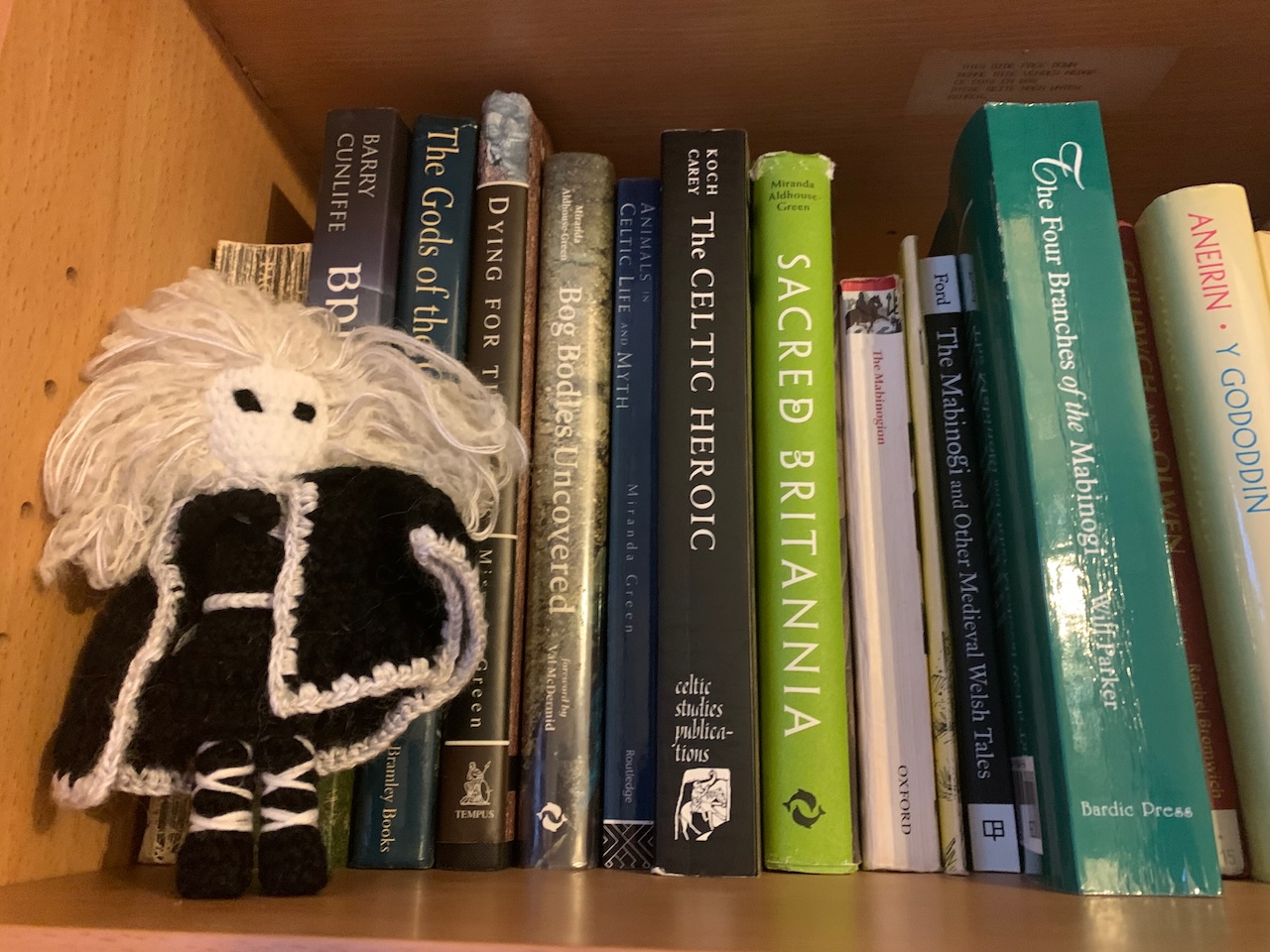 Thornsilver Hollysong is a fellow monastic devotee of Annwn who makes pocket-sized crocheted Gods from his own hand-dyed yarn. I recently commissioned him to make me a tiny Gwyn based on lines from a poem I wrote when Gwyn and I first met: