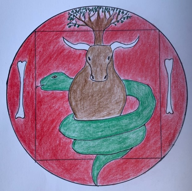 Snake and aurochs intertwine.